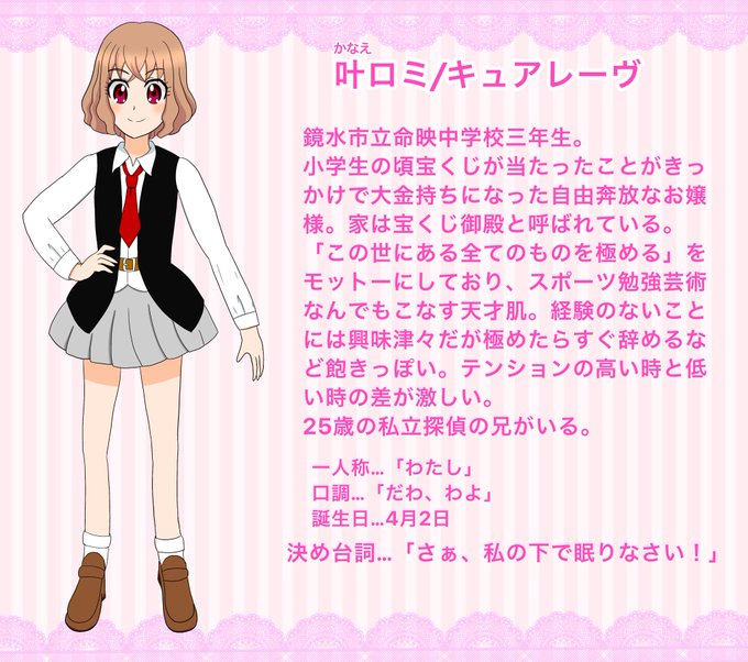 一年ぶりにクラウンプリキュア!の主人公キュアレーヴの設定と立ち絵を書き直しました✨
