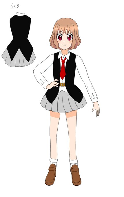 デザインは今の絵柄に合わせて微妙に変えています。変身前の服は制服です。