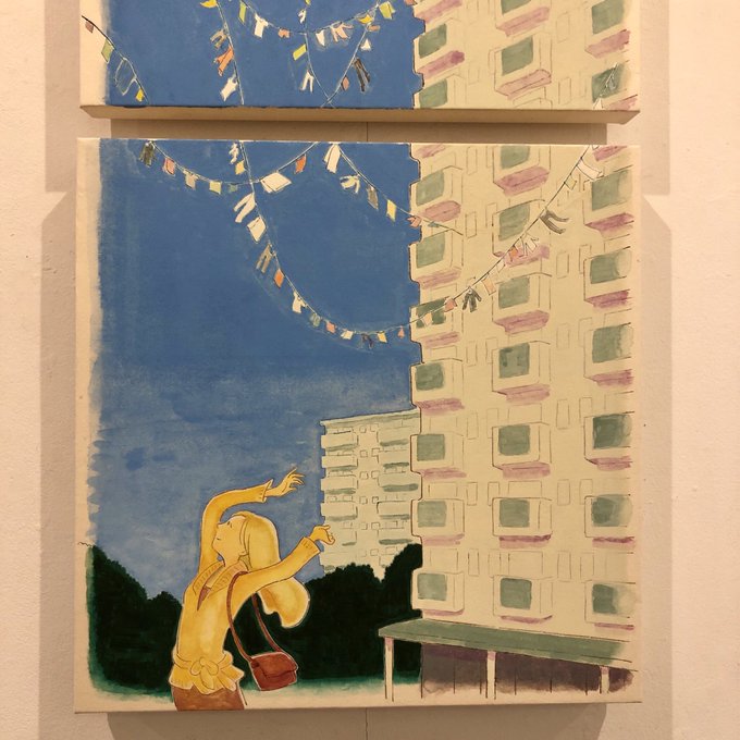 本日ハダタカヒト個展最終日!絵本「まどのそと」(佐野史郎 文 岩崎書店)原画展と描きおろしの作品を販売しています。裏テーマは「木」。販売作品素晴らしいのでコレクターの方は是非。