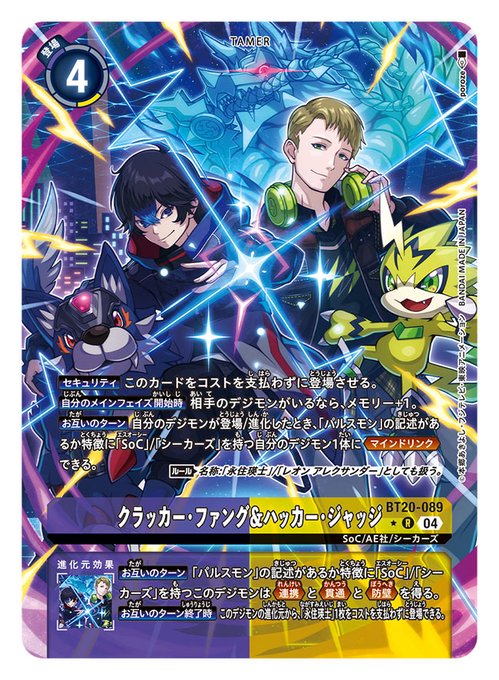 本日1/31発売のデジモンカードゲーム ブースターパック【OVER THE X】にて「クラッカー・ファング&ハッカー・ジャッジ(パラレル)」「風真照人」を描かせていただきました。