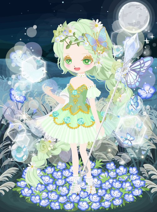 百瀬に交換してもらった全身をコーデしてみたんだけど この夜の闇に浮かぶ光を纏った感じめちゃ可愛くない?! あと靴みて!横にお花ついてるのわかる?ドレスもチョーカーと袖についてるの同じお花じゃない?これがまさかの年違うのよーーー!!!!やばー!!!!このドレスもう手放さないわ!!!!
