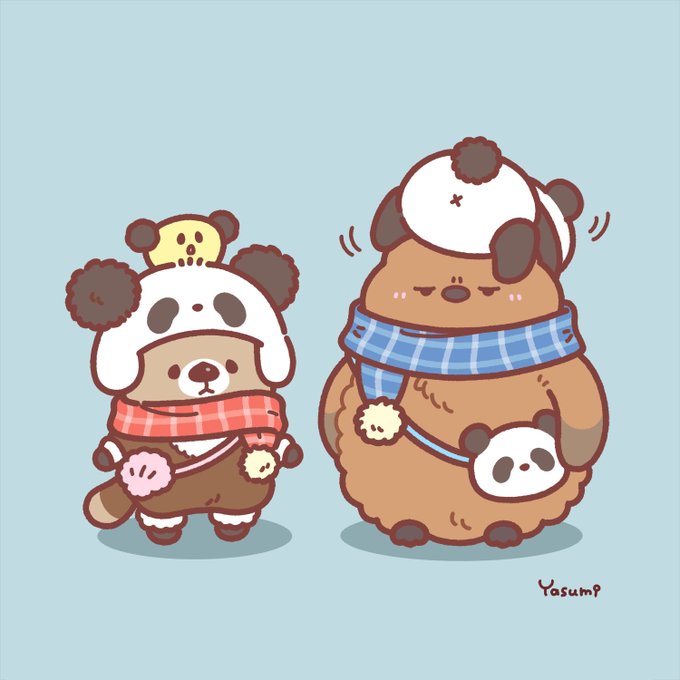 さむいから、ふわもこパンダコーデだよ〜🐼 あれ?おうぺんちゃん‥あたまのパンダさん、本物?🐼