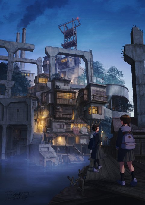 夏至の日、山神祭の夕暮れ #廃坑の街