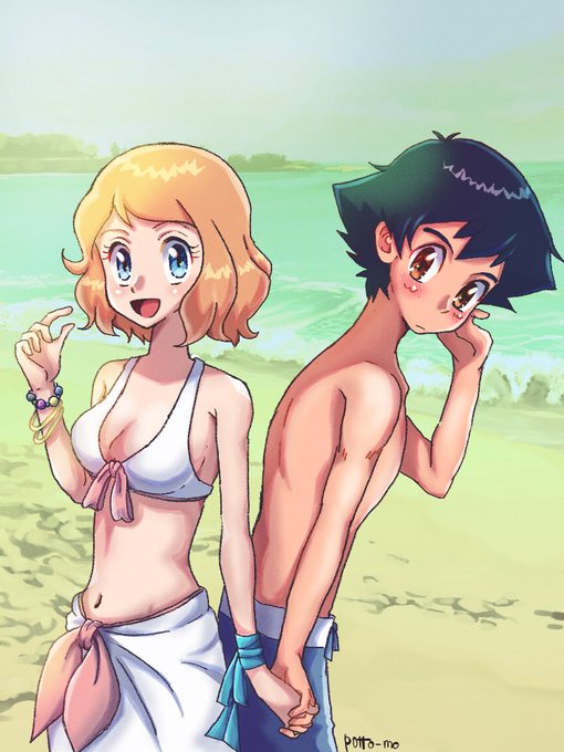セレナに絡む男から彼女を救出。思わず握ってしまっていた手に気付いて赤面。ちょっとオトナになって、セレナを意識しだしたサトシという都合のいい妄想(笑)