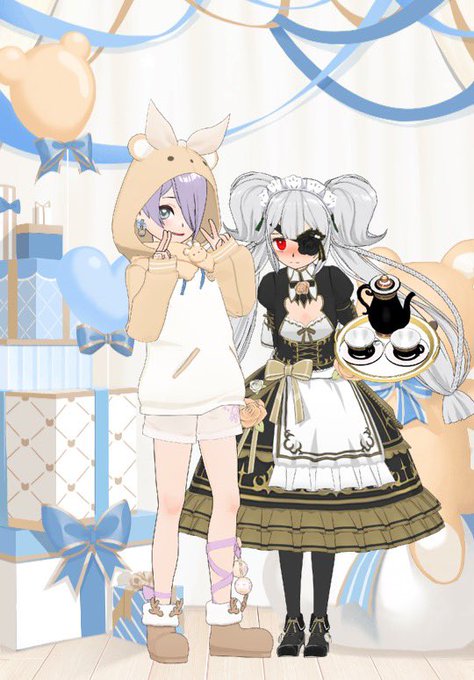 後半すこし物騒だな??? 4枚目は当たったアイテムに着替えたうちの子