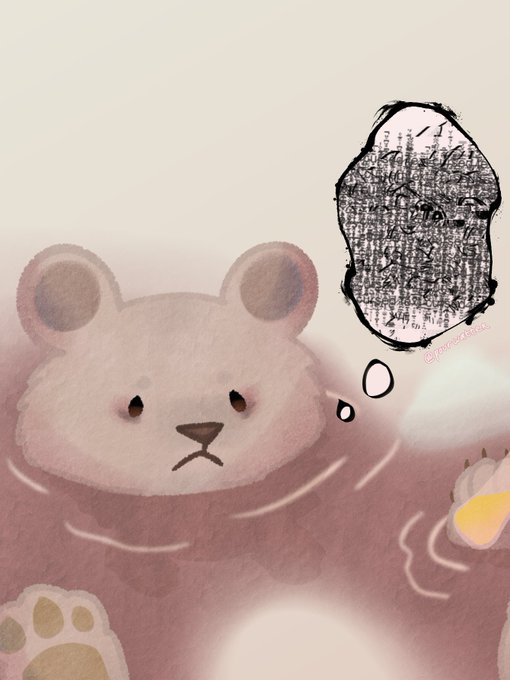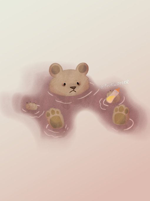 bear "vibing" in river but 8 months ago he succumbed to his instinct and ate his best friend. now he is depressed, traumatized, and probably needs therapy