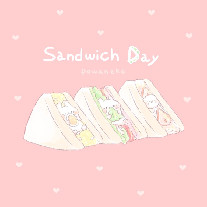 サンドイッチに挟まるねこたち🥪 #サンドイッチデー #サンドイッチの日 #今日は何の日 #イラスト