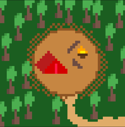 a small camp in the forest with a warm bond fire 🏕️