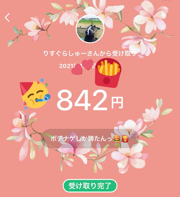 りす太郎がPayPay始めた記念で 842(ぽよち)円のポテナゲ代🍟いただきましたっっっ✨✨ ポテナゲしか勝たんっ! 明日はまっきゅ!!! ありゃとおおおお⸜(*ˊᗜˋ*)⸝