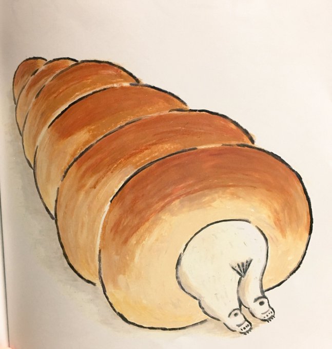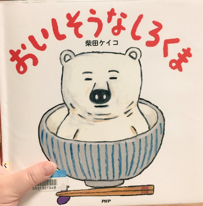 食べ物絵本つい借りちゃうんだけど、「おいしそうなしろくま」もよかった。いろいろな食べ物の中に入りたいしろくまの話。クリームコロッケの中は熱いと思うぞ。