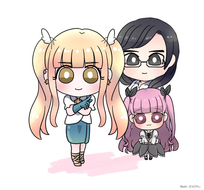#一日一枚創作アイドル #Angelжmediа 事務所の社長さんと 事務のお姉さんと ぱんでみMGのフィちゃん。