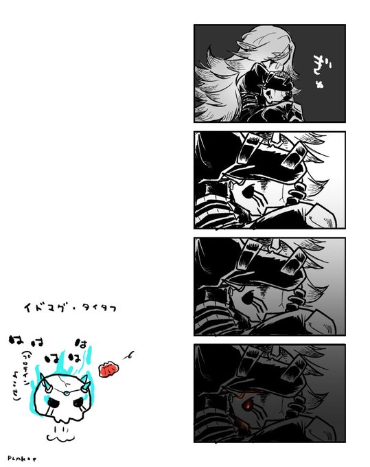 蟹ぺるカオス分岐後の髑髏が赤いのはぺるの血涙で染まったとかだとなんかロマンがあるよねの絵とカオス分岐妄想まんがだよ。病みでもしない限りデレないぺる。
