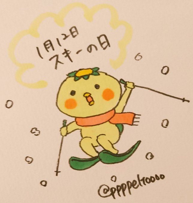 1月12日!今日は「スキーの日」! #今日は何の日 #1月12日 #スキーの日 #かっぱのキュピ #かっぱ #カッパ #LINE #LINEスタンプ
