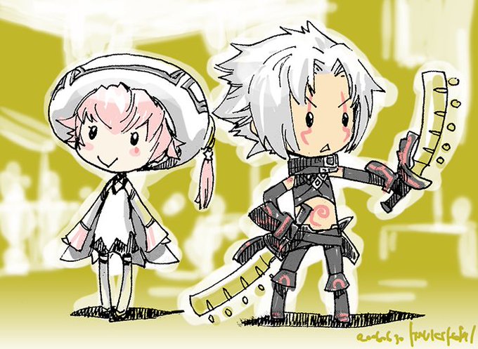 今日の『.hack//G.U. Last Recode 』応援ラクガキ、トライエッジさん。そして昨日のはゆる過ぎましたねwwこの辺りの落書当時は線画アナログスキャン+色塗り板タブ使いだったので線画直書きはプルップルでした😇 #ドットハック #dothack