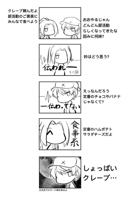 リクエスト01 お題: 甘味を嗜む能登吟 P2おまけ 私も試してみましたよ、食事系。やはりしょっぱい方が正しい。ありがとうキリコ。