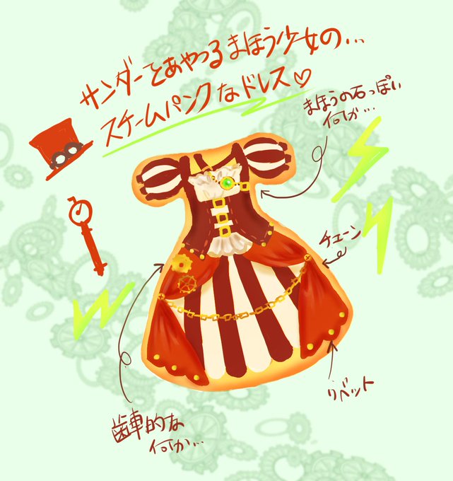 @kotorigarden こんにちは!いつもことりさんの作品を楽しみに拝見しております。素敵なプレゼント企画をありがとうございます。是非参加させて下さい♪以前オリジナルで描いたスチームパンク魔法少女のドレスクッキーをデザインしました。描いていてとっても楽しかったです。