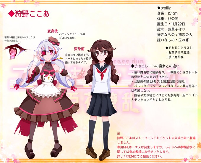 イベント終了に伴い、NPC「花見美咲」の変身前ビジュアルを含むキャラクターシートを更に公開いたします。
