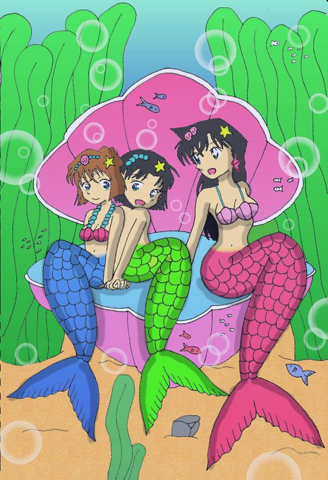 #青山ヒロインマーメイド どうにか今年が終わるまでに間に合いました🙂 魂の一作〜😆 哀ちゃん歩美ちゃん…蘭の人魚姿〜🥰 …人魚化イラストは来年も変わらず描きますねこりゃ(笑)