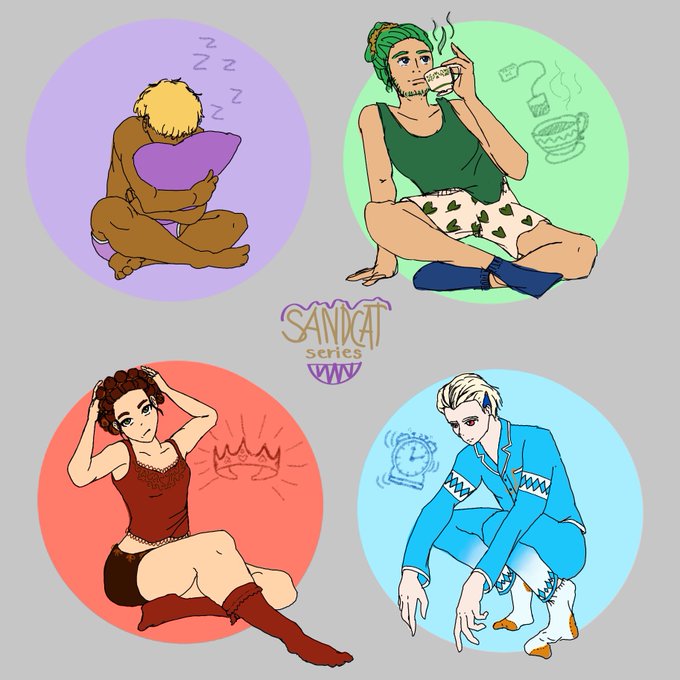 Team GHST in their pajamas + default looks #RWBYfanart #sandcatseries #rwbyoc #characterdesign