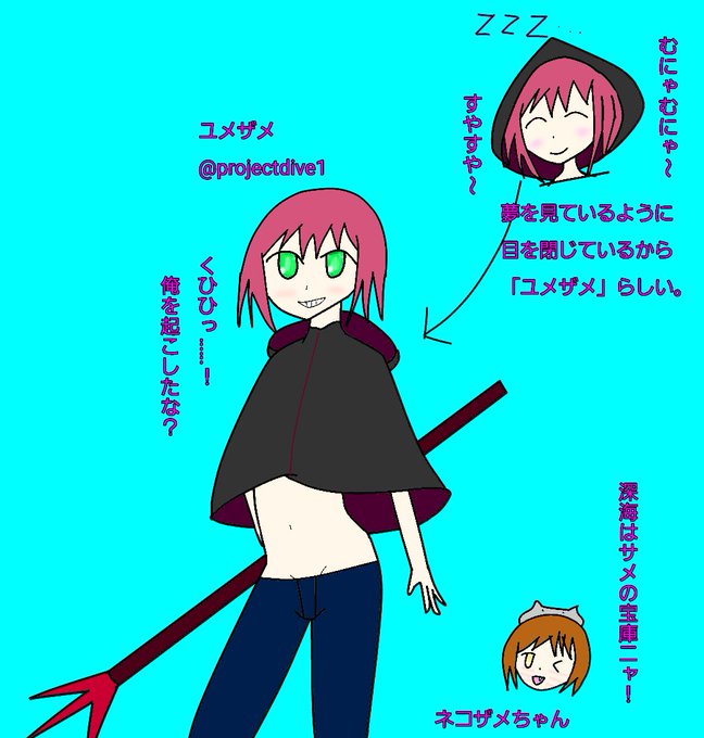 ユメザメをイメージ。 可愛らしい名前だが、深海に住むどう猛なハンターである。寝顔はかわいいけど、起こしちゃダメダヨ‼