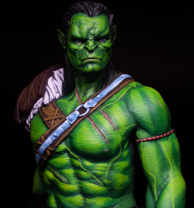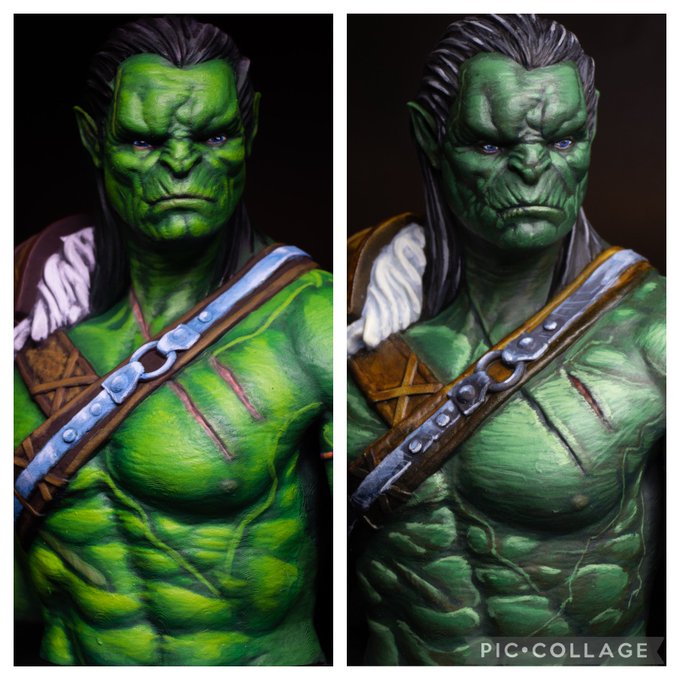 Just in time for #orktober ! I put a pause to my large project and my gift project but i wanted to participate in orctober.I redid one of my first bust ever and I’m glad I developed more skills. #orctober #villarrealminis #orc #lordoftheprint #wepaintminis #best4minis