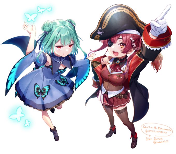 Skebであかびのさん(@ madao310)に依頼して潤羽るしあちゃんと宝鐘マリン船長を描いていただきました~。ありがとうございました!