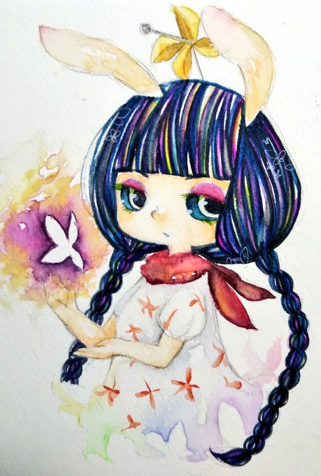 左向きと女の子とアナログしか描けないですけど何卒……🦀🦀🦀 #popn_art