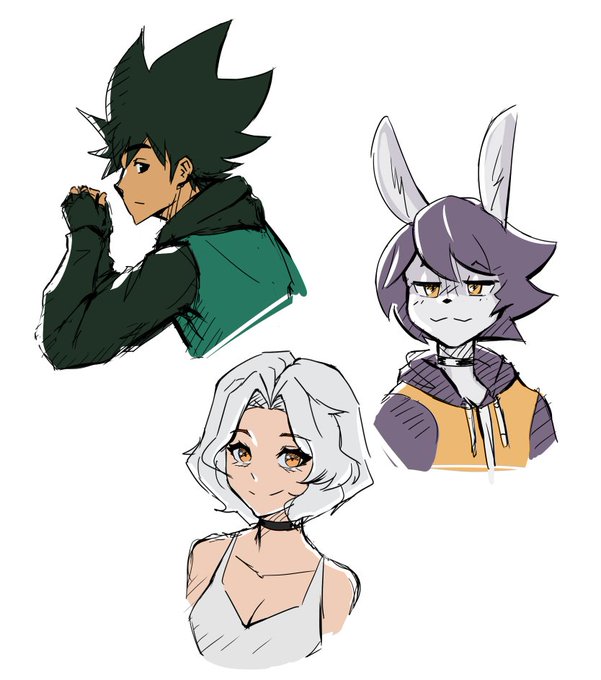 Sketches of Eren, Reiner, and Annie Titans