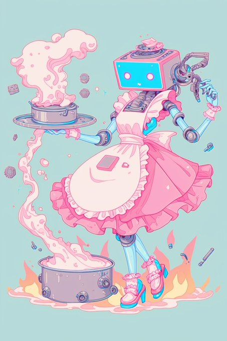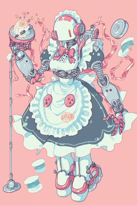 にじジャーニーに限らず画像生成たちアス比いじると縦長横長で全然生成内容変わってかわいいよねチャレンジ これいいプロンプト 縦長フリルメイドロボさん
