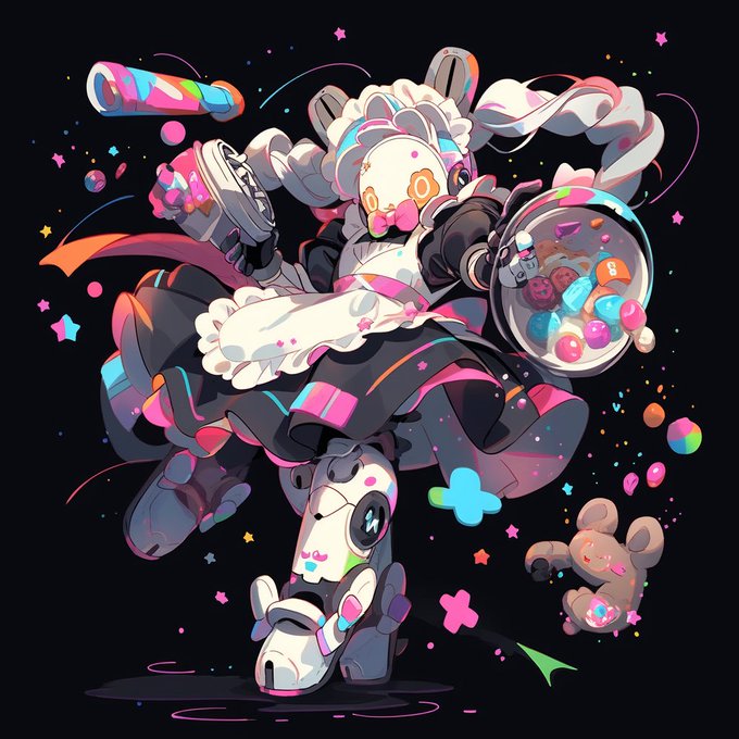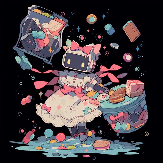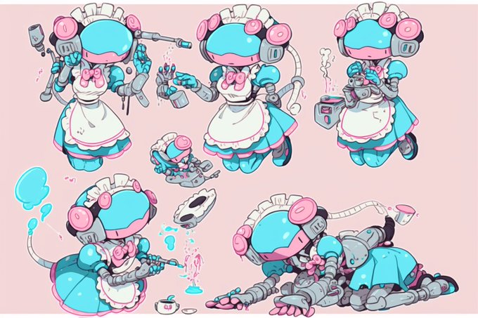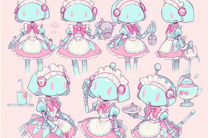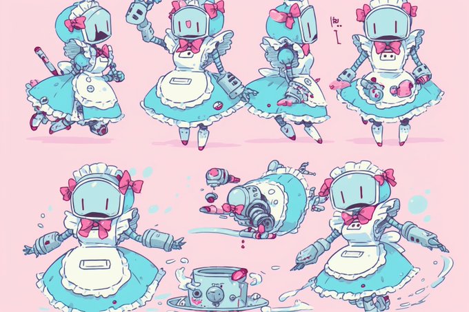 かわいいメイドロボットのようなふわふわと機械の塊が、言葉のようなものを喋っている 不慣れなミミックみたいなこういうのが出力されているとき、あくまでも生成モデルなんだなあという事が感じられてうれしいなる