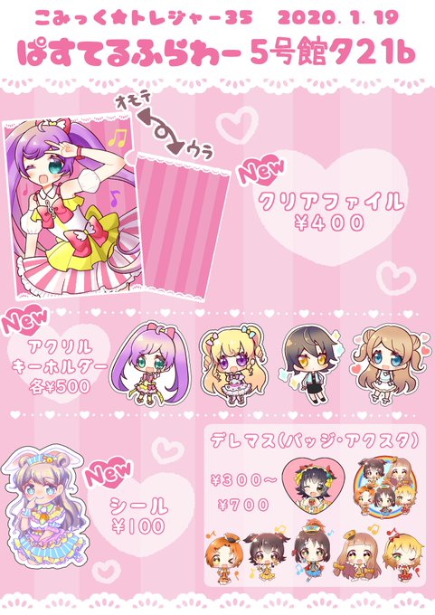 1月19日にこみっく★トレジャーに参加します! プリパラ・プリチャンのグッズと前のこみトレで出したデレマスグッズも持っていきます☀ サークル名【ぱすてるふらわー】 スペース【5号館 タ21b】 よろしくお願いします😌 #こみトレ35 #おしながき