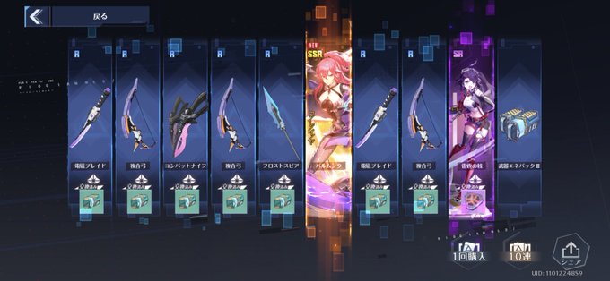 石くっそ余りましたサイコー!キャラと武器がふたつで100連くらい。