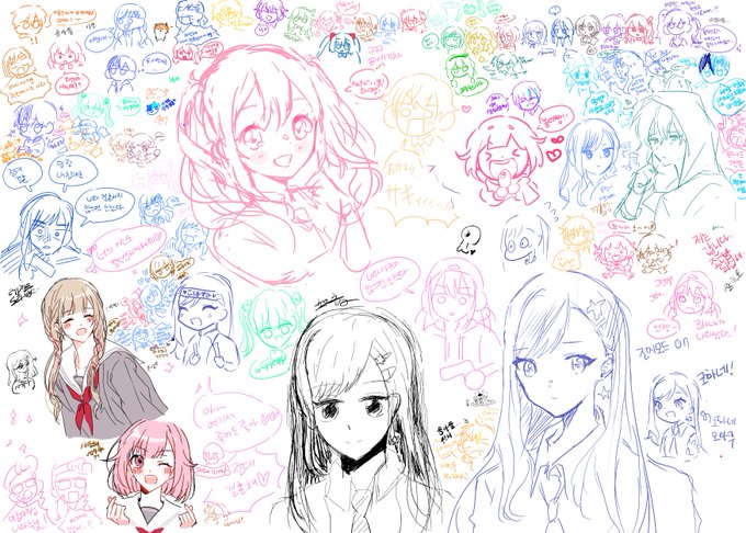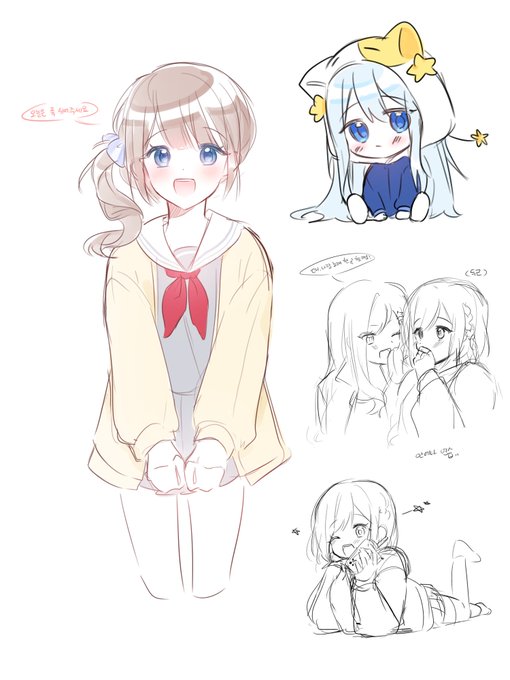 리캣님이랑 그렸던 그림에 안에나 연습이랑 에나 연습~! 호나미 그려봤는데 귀여워!! :) 호나카나 이어지는 스토리 봣는데 미쳣던데..8-8