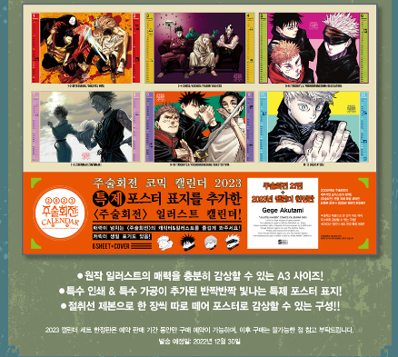 #주술회전 21 + 2023 캘린더 한정판 [ 한정부록:본권+2023 캘린더+캐릭터 일러스트카드+후시구로 메구미 포토카드+트럼프 카드 4종 ]
