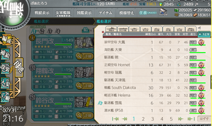 にゃふー!丁でも出た!都市伝説じゃなかった!2人め! 長門「提督からの言葉を伝える・・・駆逐艦大鳳!」 大鳳「はいっ」 長門「貝になれ!」 大鳳「( ゚Д゚)」 というわけで新しく来た大鳳をがんばって改にしてきまーす!