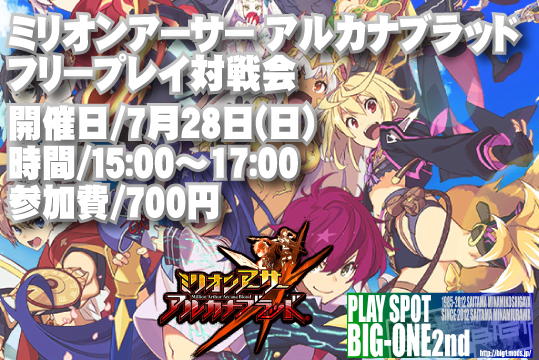 7月28日(日)15:00頃より『ミリオンアーサー アルカナブラッド フリープレイ対戦会』を開催します。※参加者3名からの開始となります。