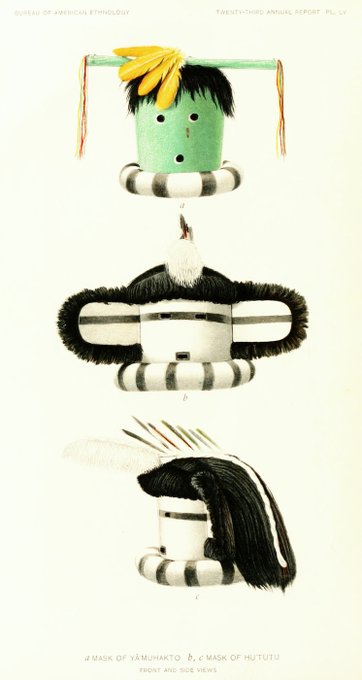 Illustrations of Zuni masks gathered in a 1904 report by anthropologist Matilda Coxe Stevenson. More here in our latest image post: https://t.co/HsQD3IcuiC