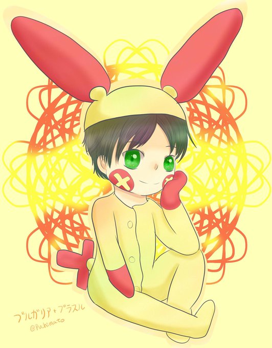 ポケヘタ企画9日目★ ブル君+プラスルです! ブル君の緑色の瞳大好きです💕