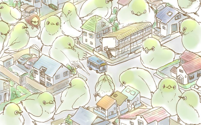 #オリジナルイラスト 一日一枚 わちゃっとことりさん 街並みを描く練習。