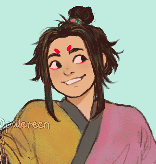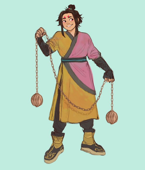redesigned my old oc so I could play dnd with him!!! his name is Ming Chen and he's a sorcerer ( tbh my fav class but cant wait to multiclass him with paladin ) just a silly boy