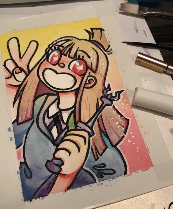 Akko from #LittleWitchAcademia!!! Watercolour, acrylic pens. That show was a goddamn blessing