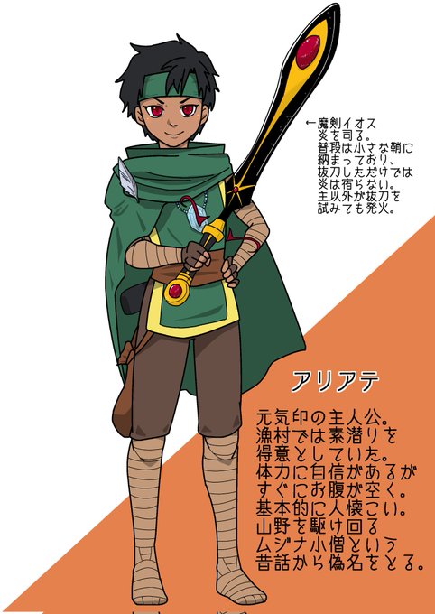 主人公アリアテは「黒髪赤目で褐色肌の人種」として登場。話の舞台が砂漠であることが元。