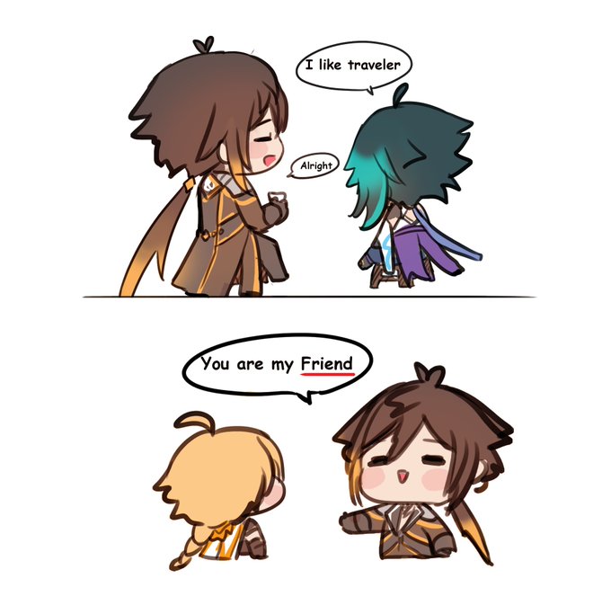 "Friend" 😅 #zhongli #aether #xiao