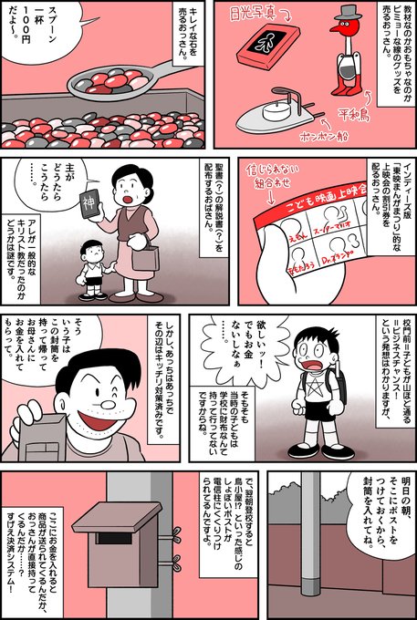 校門の前でビミョーな玩具を売ったり、若干あやしげな通信教育の勧誘をしたり。令和の世では考えられないくらいセキュリティーがガバガバだった昭和の小学校の思い出を描きました! あれはどういうビジネスモデルだったのか……。