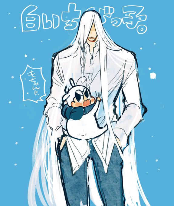 @derutadeioka (女)王さまにひっついて威嚇する雪もちょ……( ˘ω˘ )