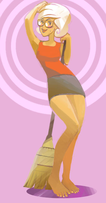 最初ポニーテールで描いていて変えました。
