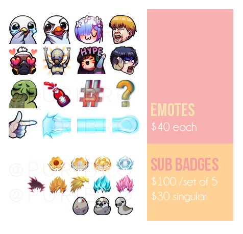 🌸TWITCH COMMISSIONS OPEN🌸 DM if interested or have any questions! (or email at puriichu@gmail.com) Prices are in USD / RT's appreciated 👌