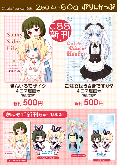 夏コミ宣伝。2日目東ム-60aです。新刊1冊目ごちうさ、新刊2冊目きんモザの予定です。きんモザの方は新刊セットもありますー https://t.co/CwSkBYG5bg