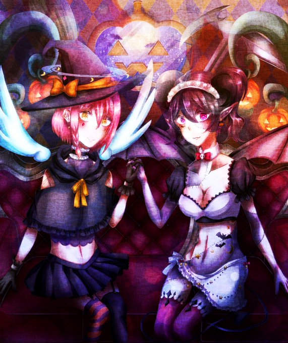 #画力変化ビフォーアフター 去年のハロウィン(一枚目)と今年のハロウィン(二枚目)