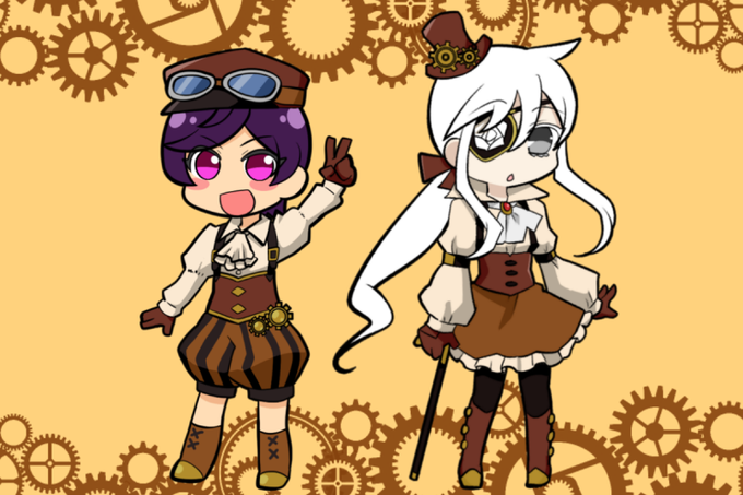 ①シャッフルで描かせていただいたジョンさん宅(@NEW27918593 )のれいりくん!和風スチパン色々調べて一旦デザインしなおしたりなどめっちゃ色々考えました、タノスィ…☺️僭越ながら描かせていただけてめちゃくちゃ恐縮です!感謝…!🙇♀️